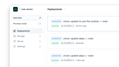 NuxtHub is a deployment and administration platform for Nuxt, powered by Cloudflare.